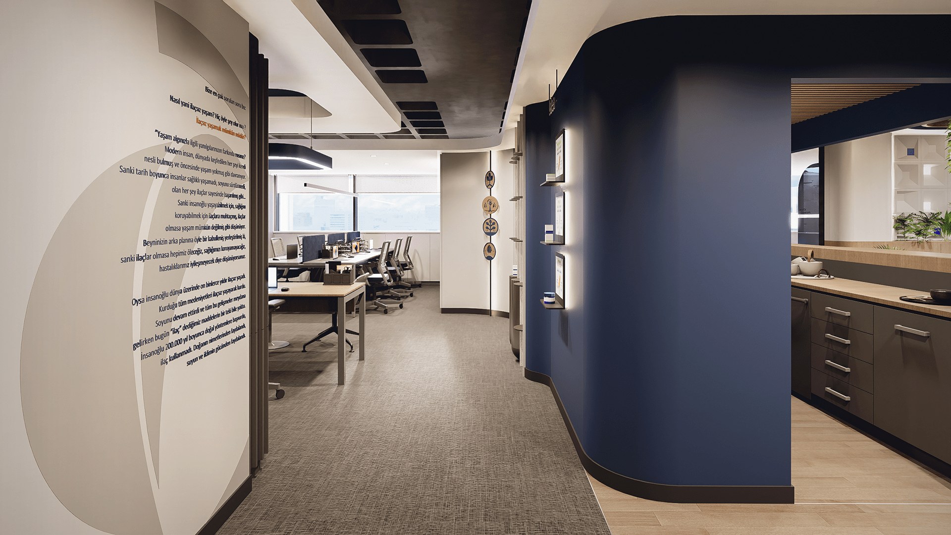 Kozyatağı’nda yer alan Değer SMMM Projesi, mevcut ofis alanının yenilenmesini konu alıyor. Tek katlı plan düzenine sahip projede, kavisli formların hâkim olduğu mekânsal kurguda markanın kurumsal kimliğiyle uyumlu bir tasarım dili benimsendi. Doğal dokular ve toprak tonlarıyla dengelenen mekân, sıcak ve davetkâr bir atmosfer sunuyor. Açık ofis alanı çevresinde konumlanan yönetici ve toplantı odaları, merkezi çekirdek etrafında organize edilerek ofis içindeki dolaşım ve görsel akışı yönlendiriyor.