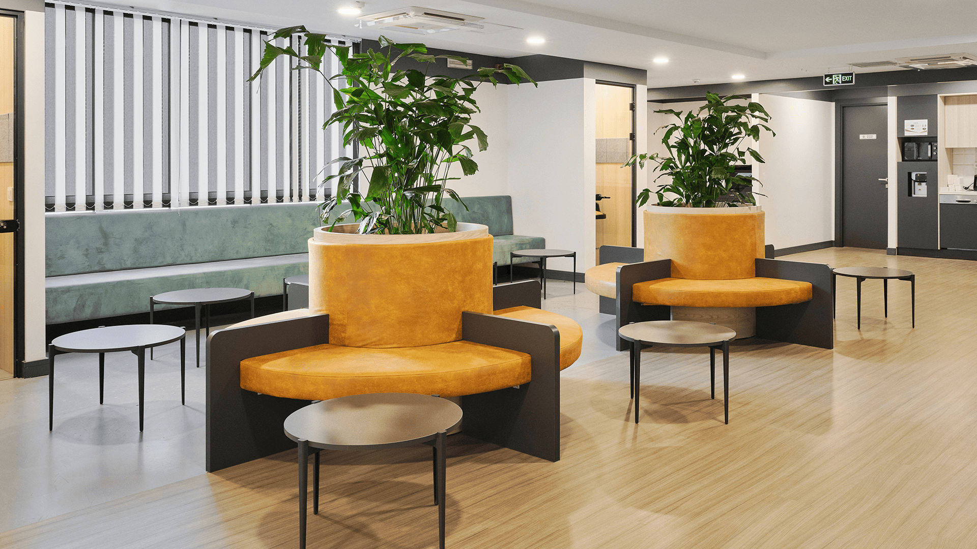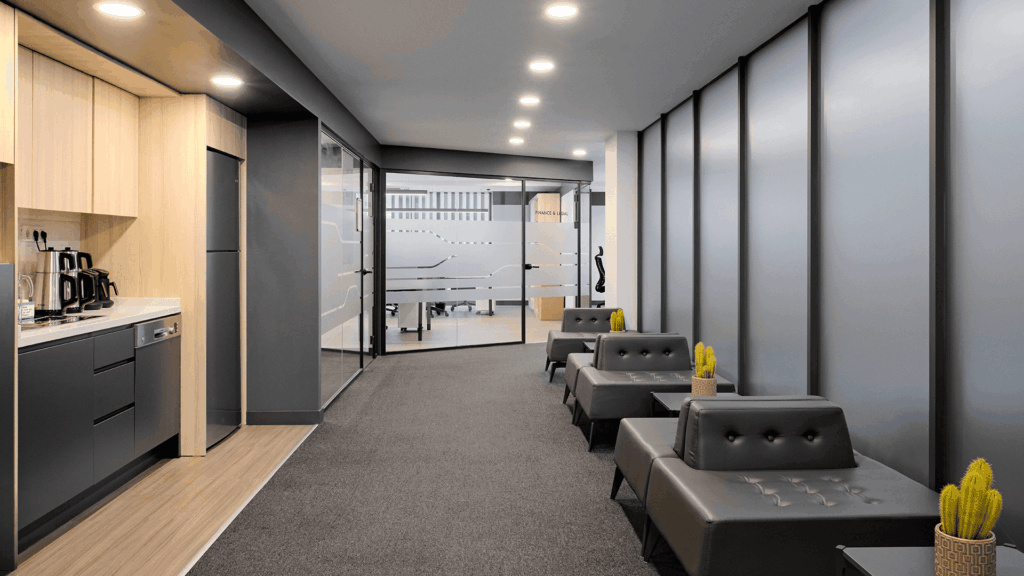 Renk paletinde, modern ve sade tonlar canlı vurgularla dengelenerek ofise enerjik ve uyumlu bir atmosfer kazandırılmıştır. Açık ofis alanları, toplantı odaları ve sosyal alanlarla bütünleşik bir düzen sunularak, ekipler arası iletişim ve iş birliği desteklenmiştir.