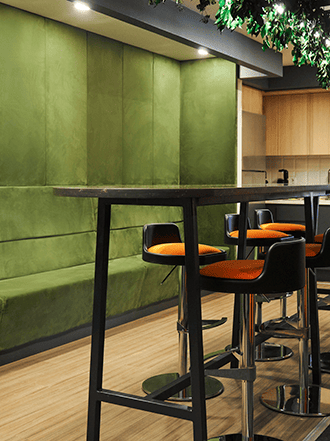 Açık ofis düzeni, şeffaf bölmeler ve esnek çalışma alanları sayesinde ekipler arasında kolay iletişim ve iş birliği sağlanır. Sosyal alanlar, toplantı odaları ve bireysel odaklanma alanları arasında kurulan denge, çalışanların hem odaklanmasını hem de etkileşimde bulunmasını mümkün kılar. Malzeme ve renk seçimlerinde, modern, sade ve genç bir tasarım dili benimsenmiş; dinamik ofis kültürüne uygun fonksiyonel ve esnek mobilyalar kullanılmıştır. Aydınlatma ve dekoratif unsurlar, mekâna enerjik ve yaratıcı bir atmosfer kazandırır.