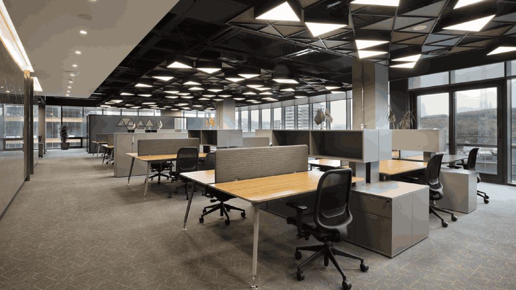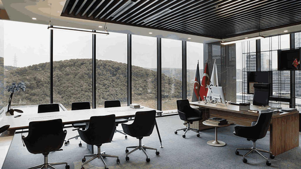 SOCAR Ofis Projesi, çağdaş ofis tasarımının işlevsellik, sadelik ve marka kimliğiyle birleştiği modern, dengeli ve kullanıcı odaklı bir iç mimari anlayışın örneğini sunar.